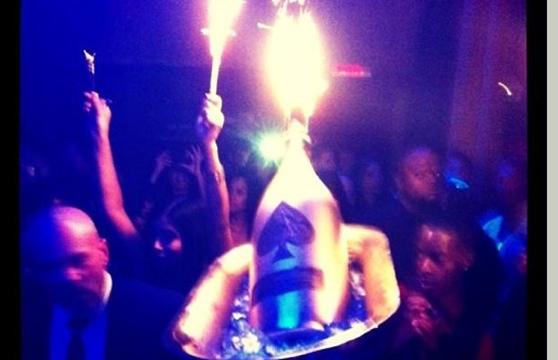 The gold Ace Of Spades bottles were flowing freely at the Watch The Throne release party, which reportedly cost hundreds of dollars and hours in line just to enter. Kanye was in Europe and couldn’t attend, but Hov made up for it by spending an absurd amount and even copping one of those massive $100k 15 liter bottles of Ace of Spade at one point.