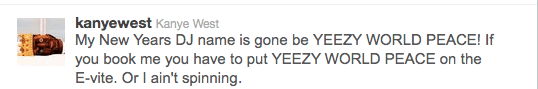 Yeezy’s not stopping there. He plans on keeping the cash flowing through the end of the year, having recently announced he’ll DJ on New Year’s Eve under the alias Yeezy World Peace.