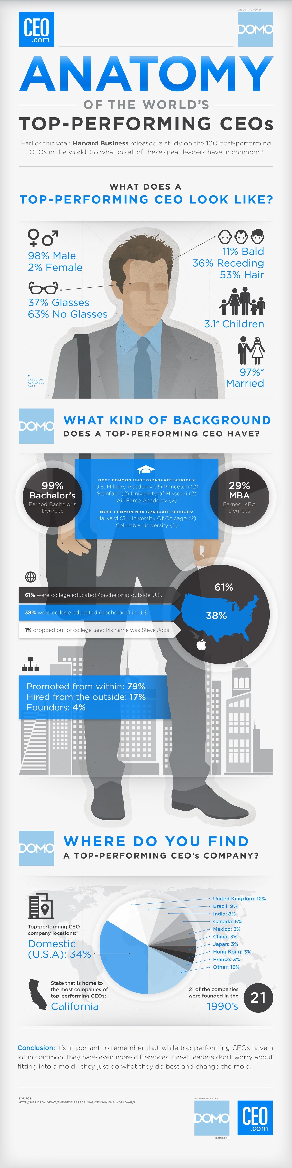 By GWOPNovember 24, 2013GWOP Leave a comment Anatomy of a Top Performing CEO Data compiled by the Harvard Business Review, Domo and CEO.com created an infographic to show us what a top-performing CEO looks like. Share #GWOP: Click to share on Flattr (Opens in new window) Flattr Click to share on Pinterest (Opens in new window) Pinterest Click to share on LinkedIn (Opens in new window) LinkedIn Click to share on Tumblr (Opens in new window) Tumblr Click to email a link to a friend (Opens in new window) Email Click to share on X (Opens in new window) X Click to share on Reddit (Opens in new window) Reddit Click to share on Facebook (Opens in new window) Facebook Click to print (Opens in new window) Print Click to share on WhatsApp (Opens in new window) WhatsApp Like Loading... Related 2013anatomybusinessCEO