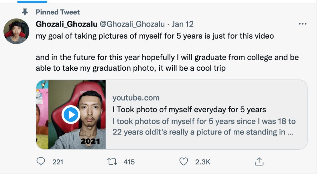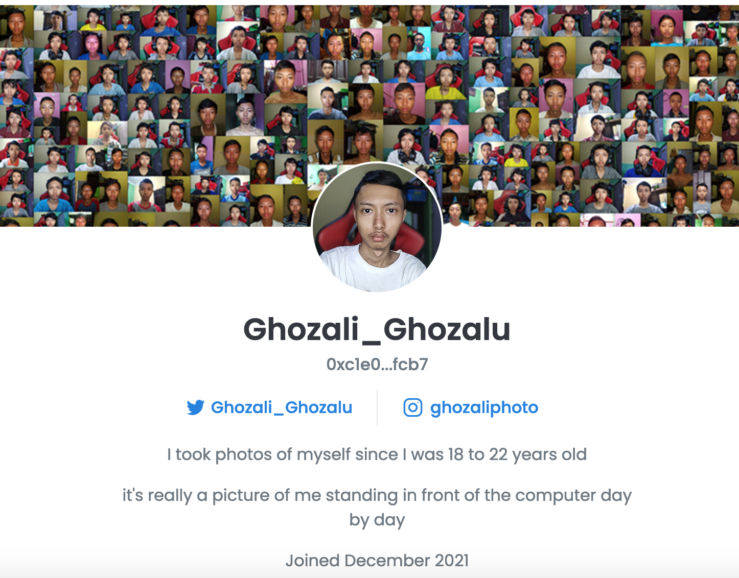 Ghozali, a 22-year-old man from Semarang, Central Java who goes by @Ghozali_Ghozalu on the NFT trading platform OpenSea, snapped selfies of himself “standing in front of the computer day by day” for five years from 2017.