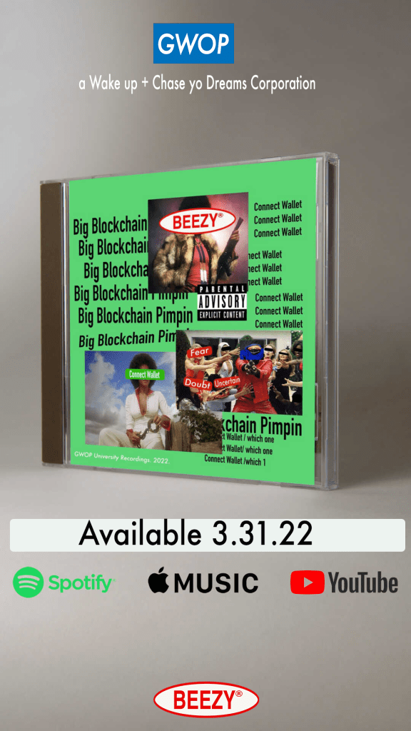 Beezy is back on the blockchain with more NFT music for your brain. Big Blockchain Pimpin Streaming on all digital platforms 3.31.22.