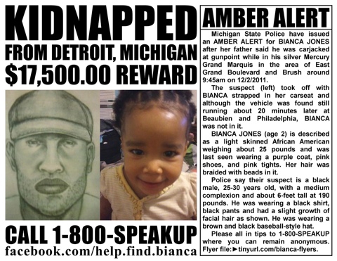 In unrelated Newz, 2 year old baby Bianca Jones was kidnapped yesterday on the northeast side of Detroit.